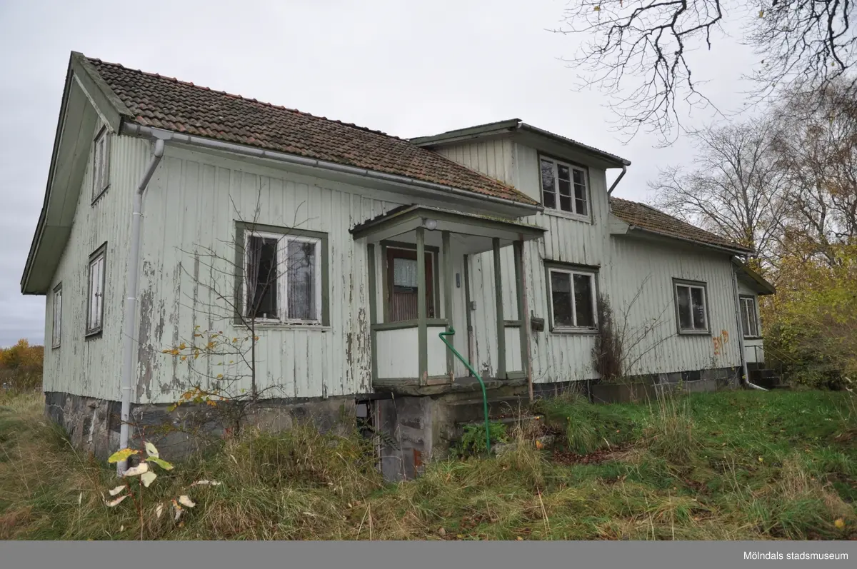 Bostadshus på fastigheten Ranntorp 2:20 i Ranntorp, Lindome, i Mölndals kommun. Fotografiet är taget den 22/10 2014. Byggnadsdokumentation inför rivning.