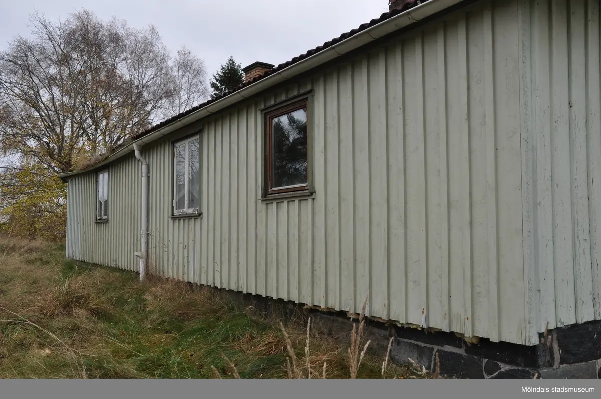 Bostadshus på fastigheten Ranntorp 2:20 i Ranntorp, Lindome, i Mölndals kommun. Fotografiet är taget den 22/10 2014. Byggnadsdokumentation inför rivning.