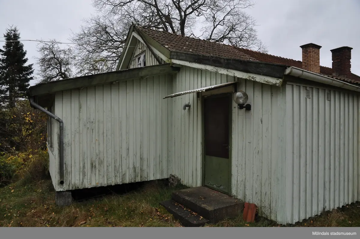 Bostadshus på fastigheten Ranntorp 2:20 i Ranntorp, Lindome, i Mölndals kommun. Fotografiet är taget den 22/10 2014. Byggnadsdokumentation inför rivning.