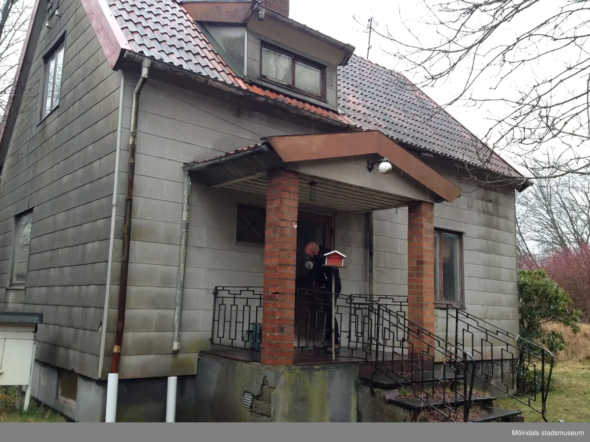 Bostadshus på fastigheten Sandbäck 1:55 i Sandbäck, Mölndal. Fotografi taget den 31/3 2017. Byggnadsdokumentation inför rivning.