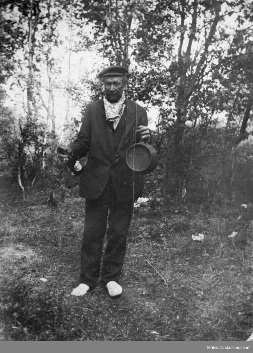 "Tommis", Karl-Johan Samuelsson står vid en träddunge. Mölndal, okänt årtal.