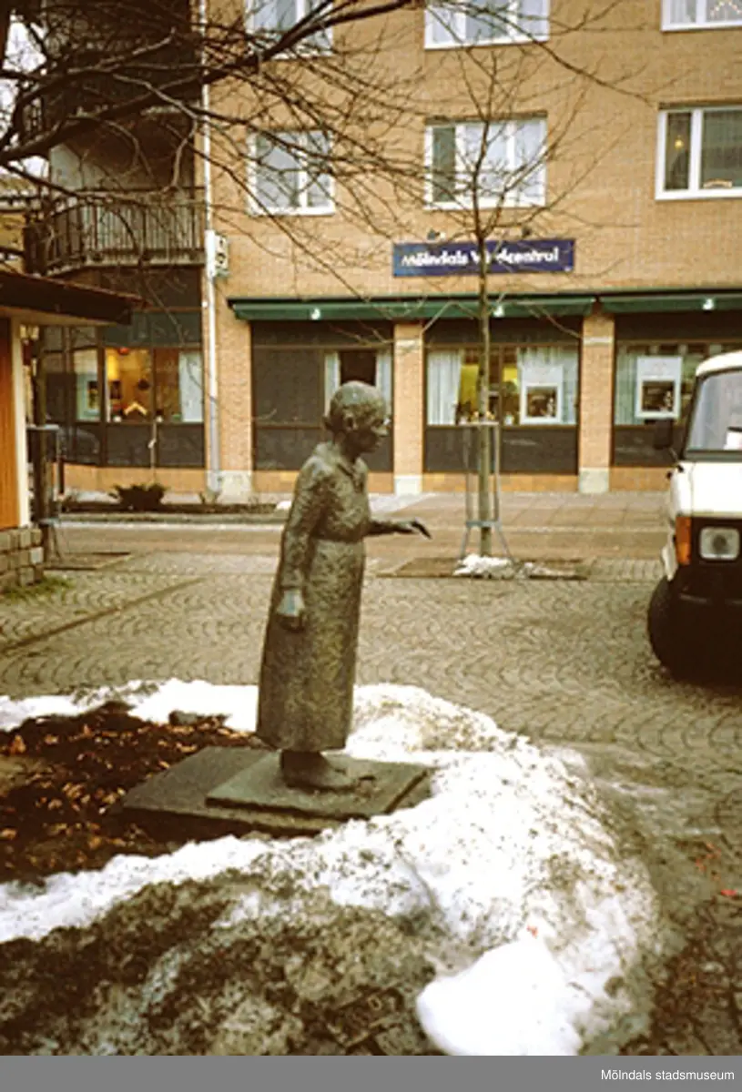 Titel: Skulptur på Mölndals torg i Mölndals centrum, mars 1994.