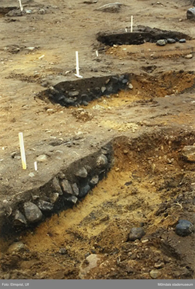 Arkeologisk utgrävning av gamla kokgrupar i Stretered, år 2001. Senare byggdes bostäderna Tulebovägen/Ängsbackevägen här.