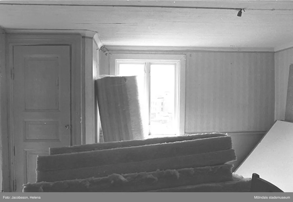 Titel: Omöblerad interiörbild i bostadshus på Roten M 27 i Mölndals Kvarnby, 1972.