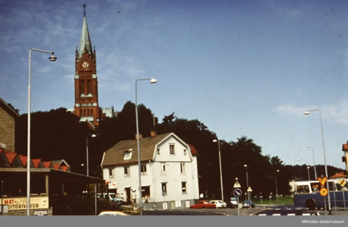 Joel Jakobssons Järnaffär i Mölndal. Fässbergs kyrka i bakgrunden.