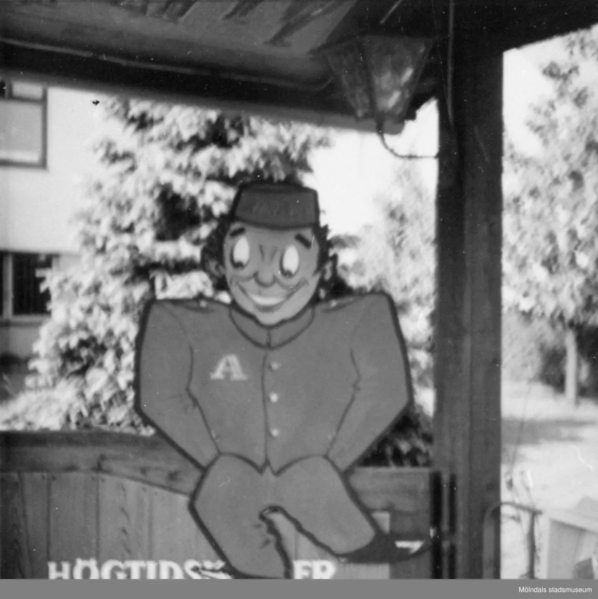 Reklamfigur som Ahlbergs skrädderi hade mot gatan på Barnhemsgatan 16, 1960-tal.