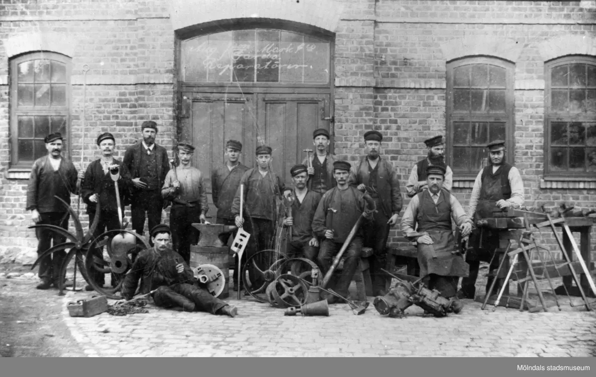 Reparatörer vid textilfabriken August Johansson Mark & Co, Gårda i Göteborg.
