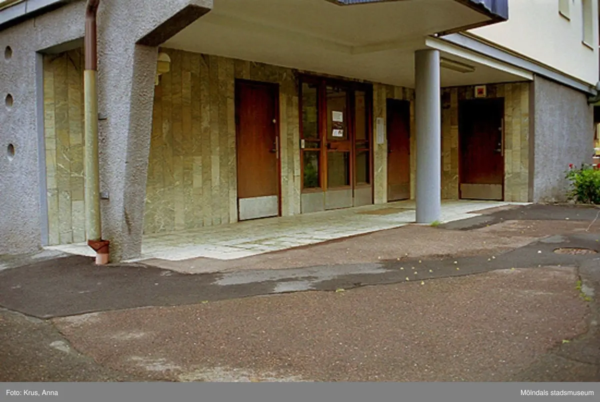Detalj av entré mot väster. Punkthus, Runeberg.