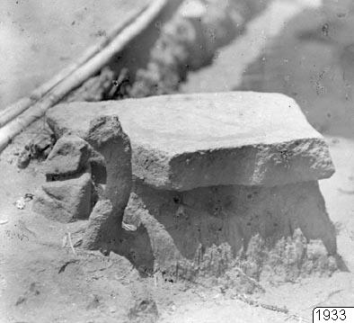 Flat sten med grund ringfåra. Stenarna framför föreställa en man och en kvinna. Dato 19 okt. 1918. Central-Celebes. Foto erhållit av: Först till museet. Dato 1922. Sciopt. 1933. Kliché 2140. publ. Kaudern. "I Celebes obygder" Del. 2 Sthlm. 1921. Fig. 57. (kontaktkort). Överskrift med blyerts, Mellan-Celebes: Paloe (kontaktkort).