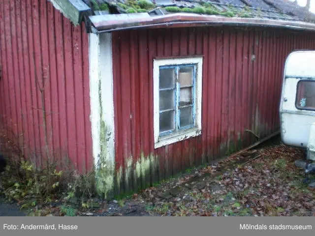 Det rödmålade Månstorpet, Sjövalla 1:118, i Mölndal. Fotografi taget den 9/11 2007. Byggnadsdokumentation inför rivning.