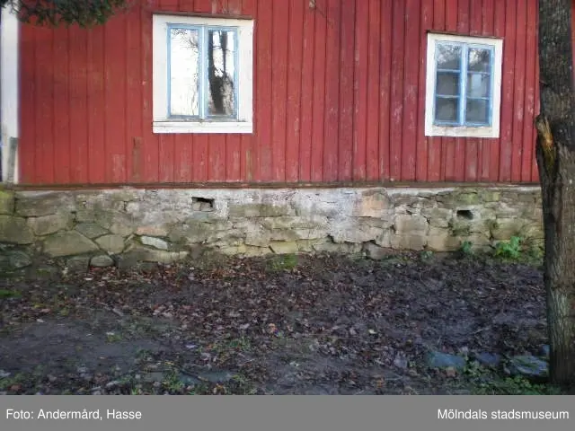 Det rödmålade Månstorpet, Sjövalla 1:118, i Mölndal. Fotografi taget den 9/11 2007. Byggnadsdokumentation inför rivning.