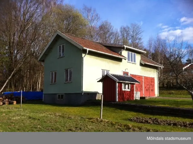 Titel: Bostadshus på fastigheten Gårda 1:8 i Gårda, Lindome, i Mölndals kommun. Fotografi taget den 1/4 2014. Byggnadsdokumentation inför rivning.