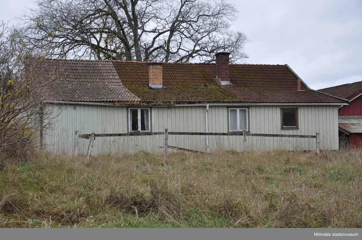 Bostadshus på fastigheten Ranntorp 2:20 i Ranntorp, Lindome, i Mölndals kommun. Fotografiet är taget den 22/10 2014. Byggnadsdokumentation inför rivning.