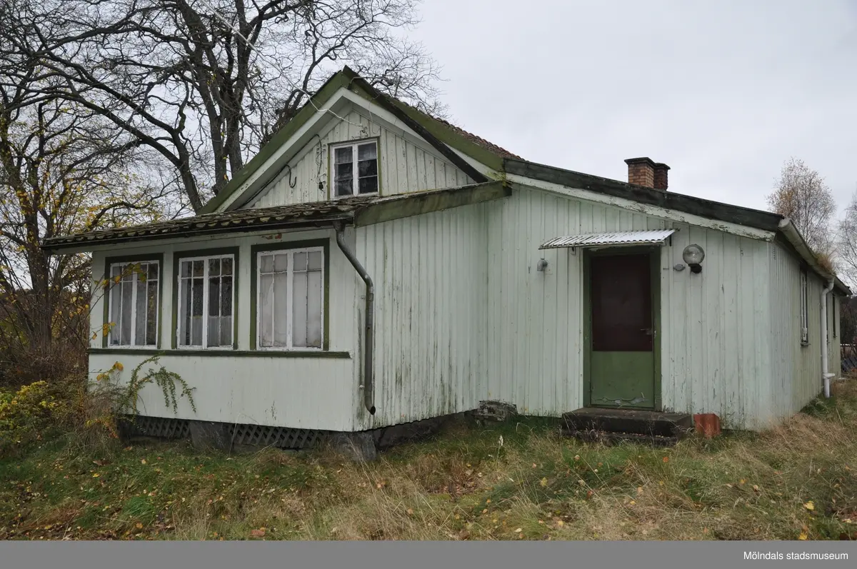 Bostadshus på fastigheten Ranntorp 2:20 i Ranntorp, Lindome, i Mölndals kommun. Fotografiet är taget den 22/10 2014. Byggnadsdokumentation inför rivning.
