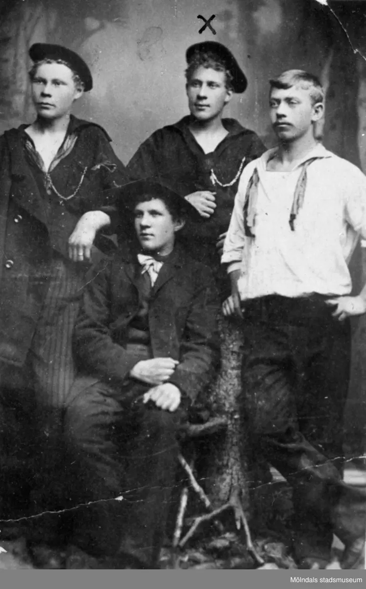 "Smen's" bröderna Andersson, text: "Jon Gustavsson och hans bröder." Bilden märkt: "Minne, Rosa Johansson klass 5f3." Enligt givaren Carl Tuvsjö, hette bröderna Andersson. Mölndal, okänt årtal.