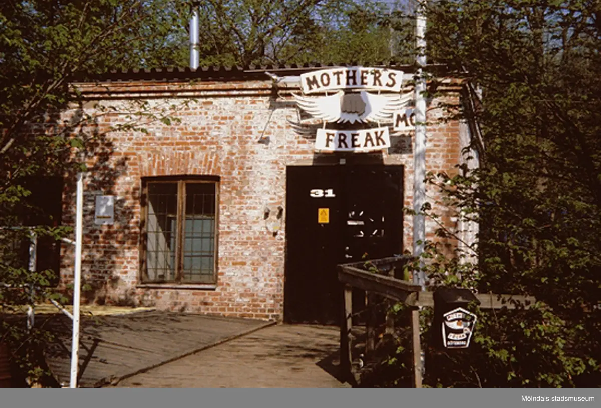 "Mother's Freaks" MC-lokal på Strandgatan. Samrådsgruppen promenerar i "Övre Kvarnbyn" (Bettyholm mm) 1994-05-09.