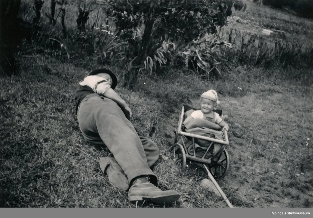Casper Winsnes och Ulf Winsnes (farfar och sonson) i gröngräset, år 1949.