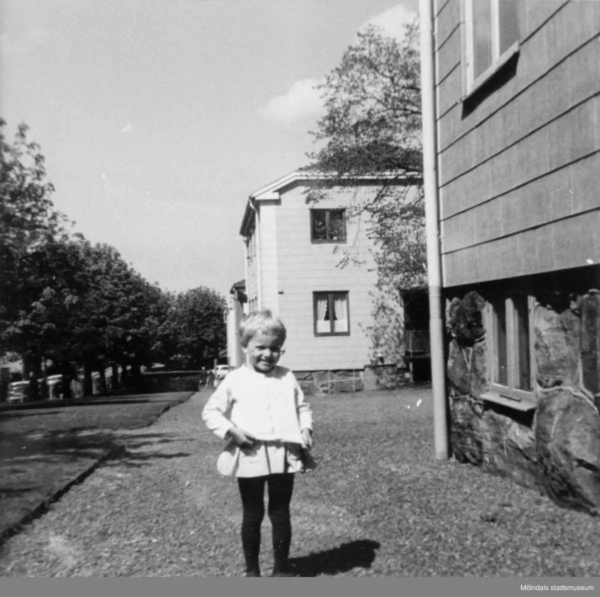 En liten flicka som står utanför papyrushusen på Brunnsgatan (1-9). 1960-tal.