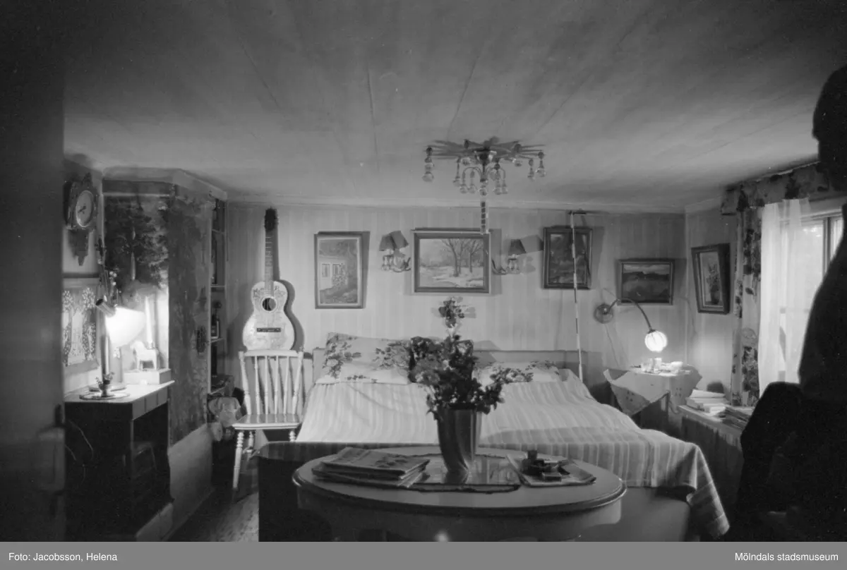 Titel: Interiörbild i bostadshus på Roten M 18 i Mölndals Kvarnby, 1972. Bostadshuset har en kvarvarande "brygga" utanpå. Se bild 1991:1106.