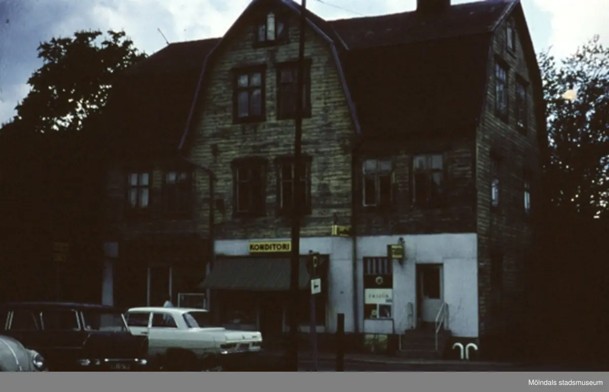 Konditori och frisör m.m. på Frölundagatan i Mölndal, år 1971-72.