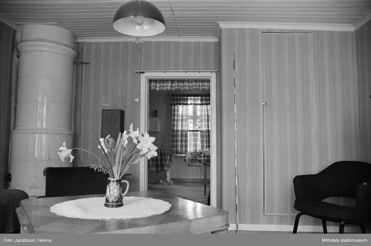 Roten L 13 i Mölndals Kvarnby. Lägenhetsinteriör från rotebostad. Kakelugn.