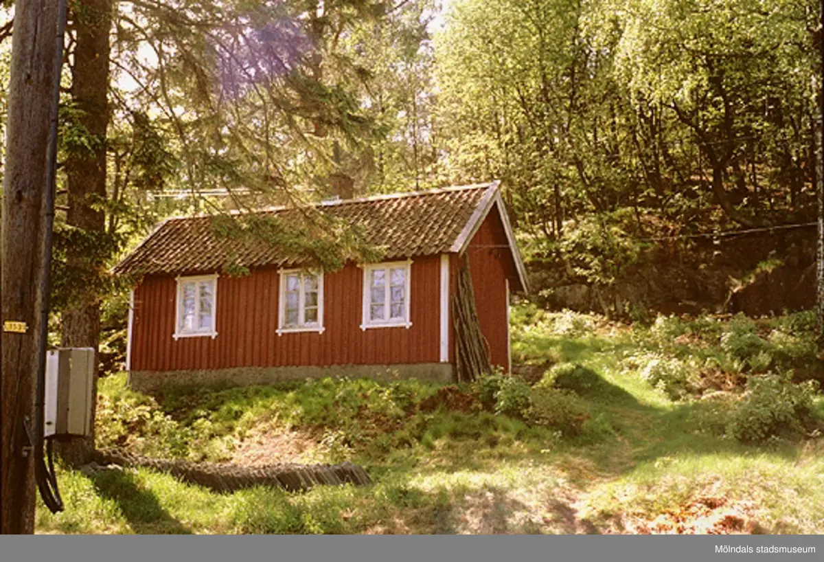 Ett hus i området söder om Fässbergs kyrkogård, alldeles intill "Fässberget", maj 1993.