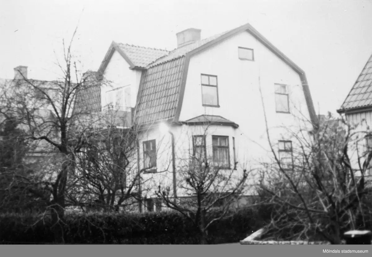 När Mölndalsbron byggdes. Ahlbergs skrädderi och bostad från sydost, 2 februari 1975.