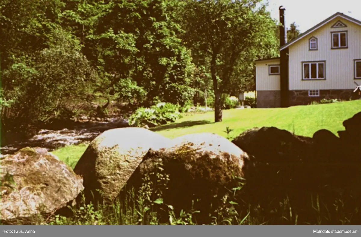 Skåregärde 1:6. Till vänster om bostadshuset syns forsen, fotograferad från väster.