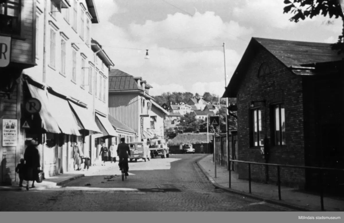 Kvarnbygatan i Mölndal utanför Papyrus port år 1954.