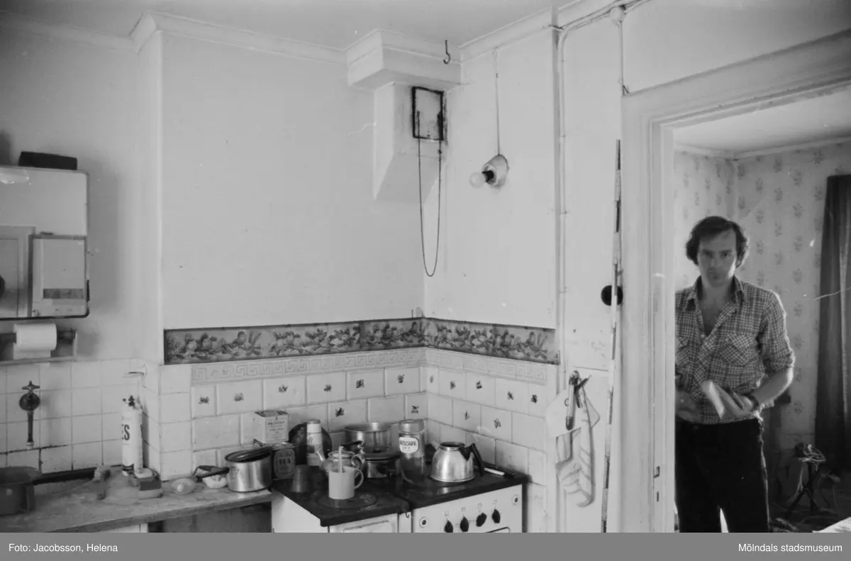Köksdel i bostadshus Roten M 11-12, okänt årtal. Vindsvåningen avbildad. Okänd person.