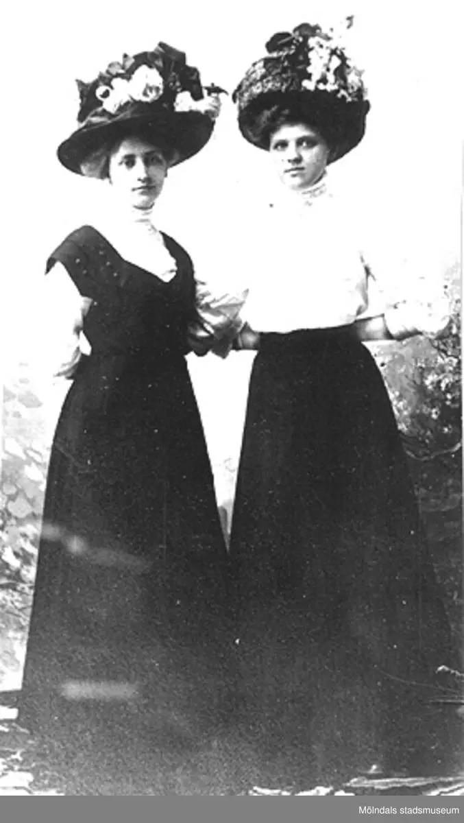 Titel:Två okända kvinnor från Annestorp, Lindome, ca 1900.