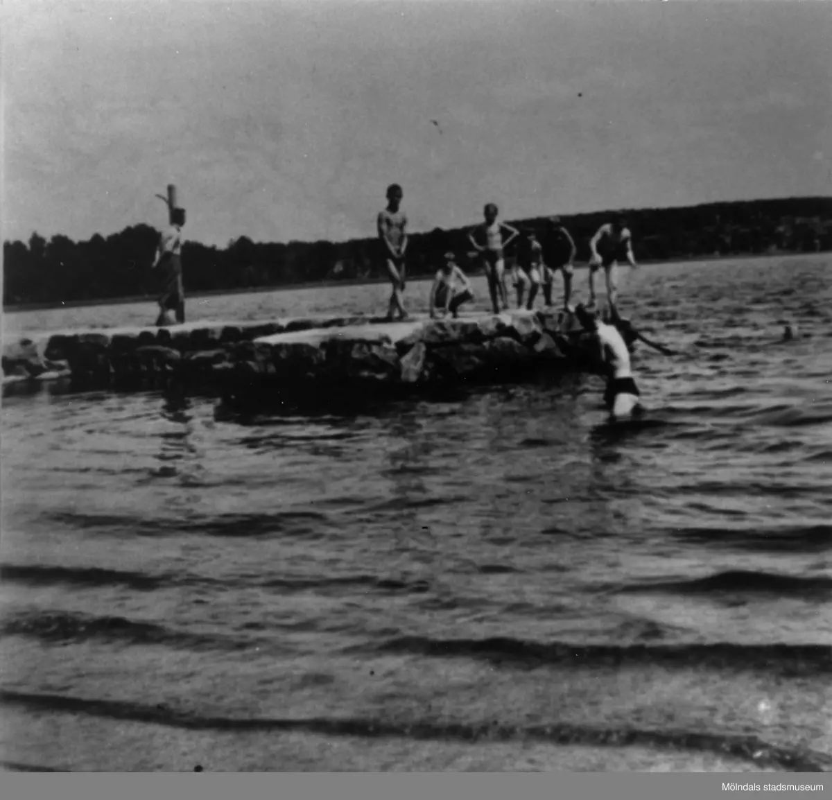 Bad i Tulebosjön i Kållered, 1940-tal.