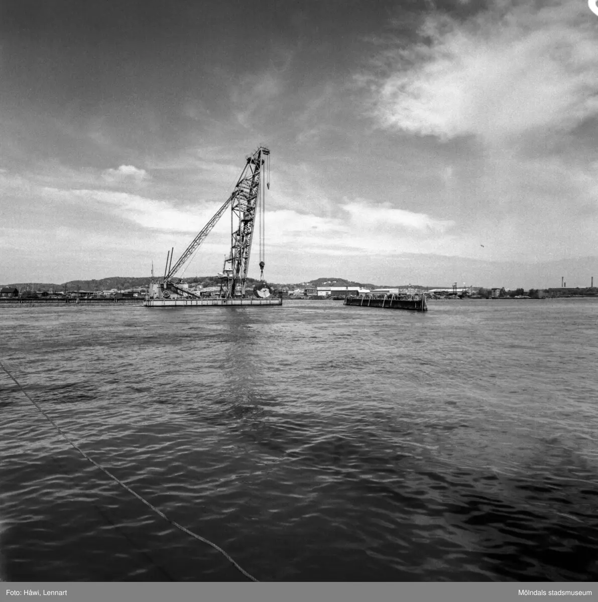 Transport av pappersbruket Papyrus PM2 yankeecylinder. Cylindern fraktas med flytande lyftkran i Göteborgs hamn, 2/6 1956.