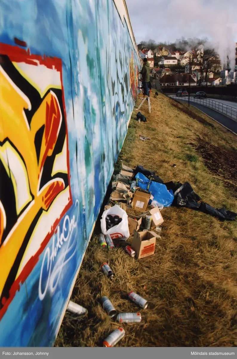 Graffiti längs Kvarnbygatan i Mölndal, år 2003.