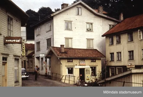 Början av Götaforsliden år 1963. Huset till höger blev senare Kråkans Krog. Det vita huset till vänster ligger på Götaforsliden 6 och huset längst till höger ligger på Götaforsliden 4.