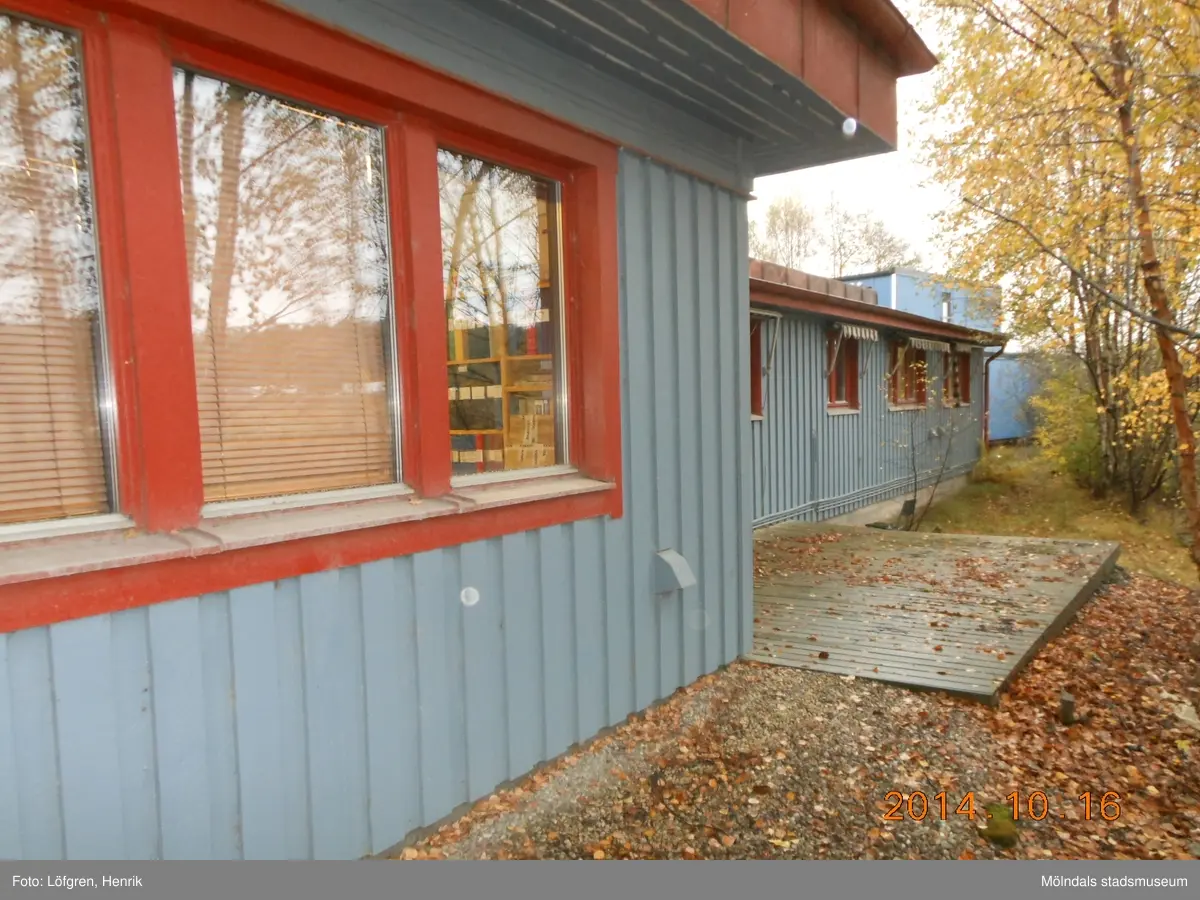Kontorsbyggnad tillhörande fastigheten Backen 5:1 vid Sagsjövägen i Kållered. Vågkontor vid bergtäkten. Fotografi taget den 16/10 2014. Byggnadsdokumentation inför rivning.