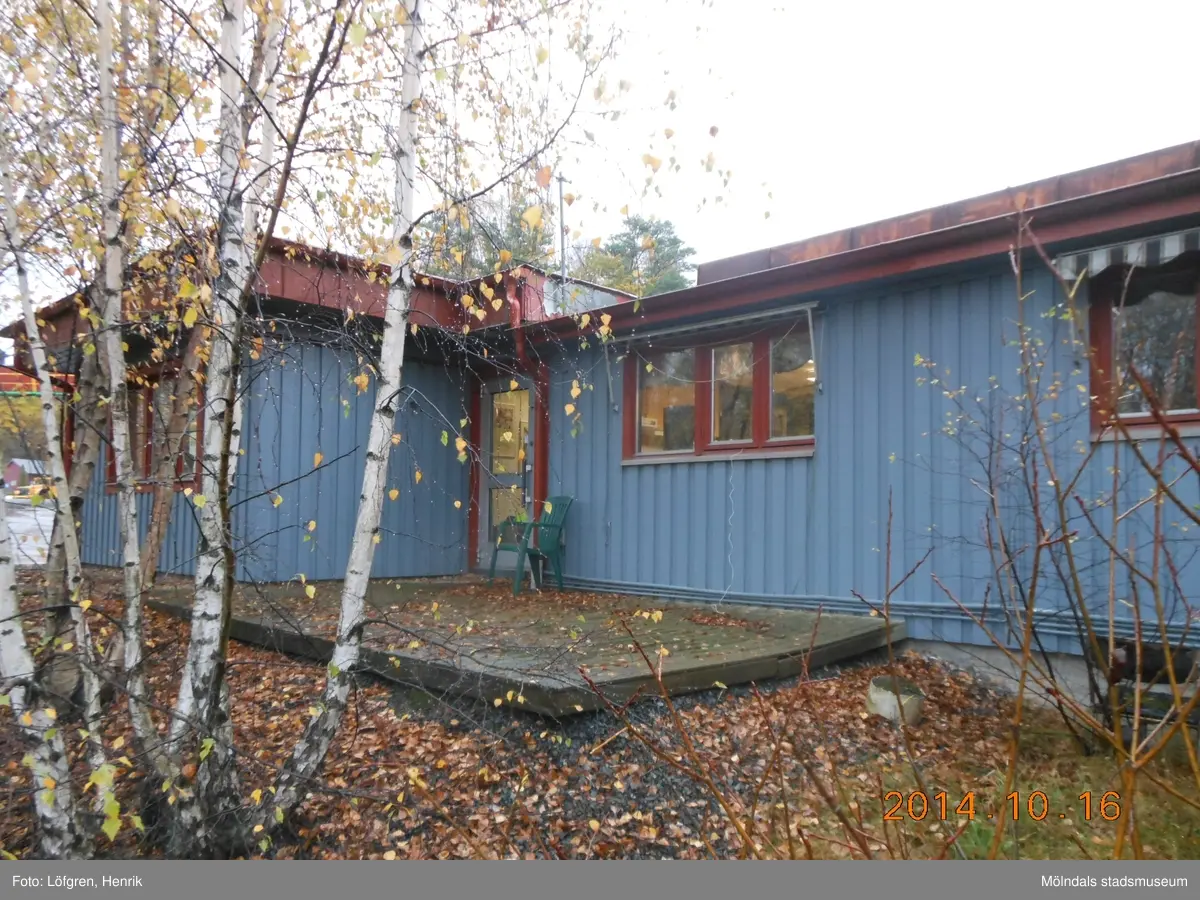Titel: Kontorsbyggnad tillhörande fastigheten Backen 5:1 vid Sagsjövägen i Kållered. Vågkontor vid bergtäkten. Fotografi taget den 16/10 2014. Byggnadsdokumentation inför rivning.
