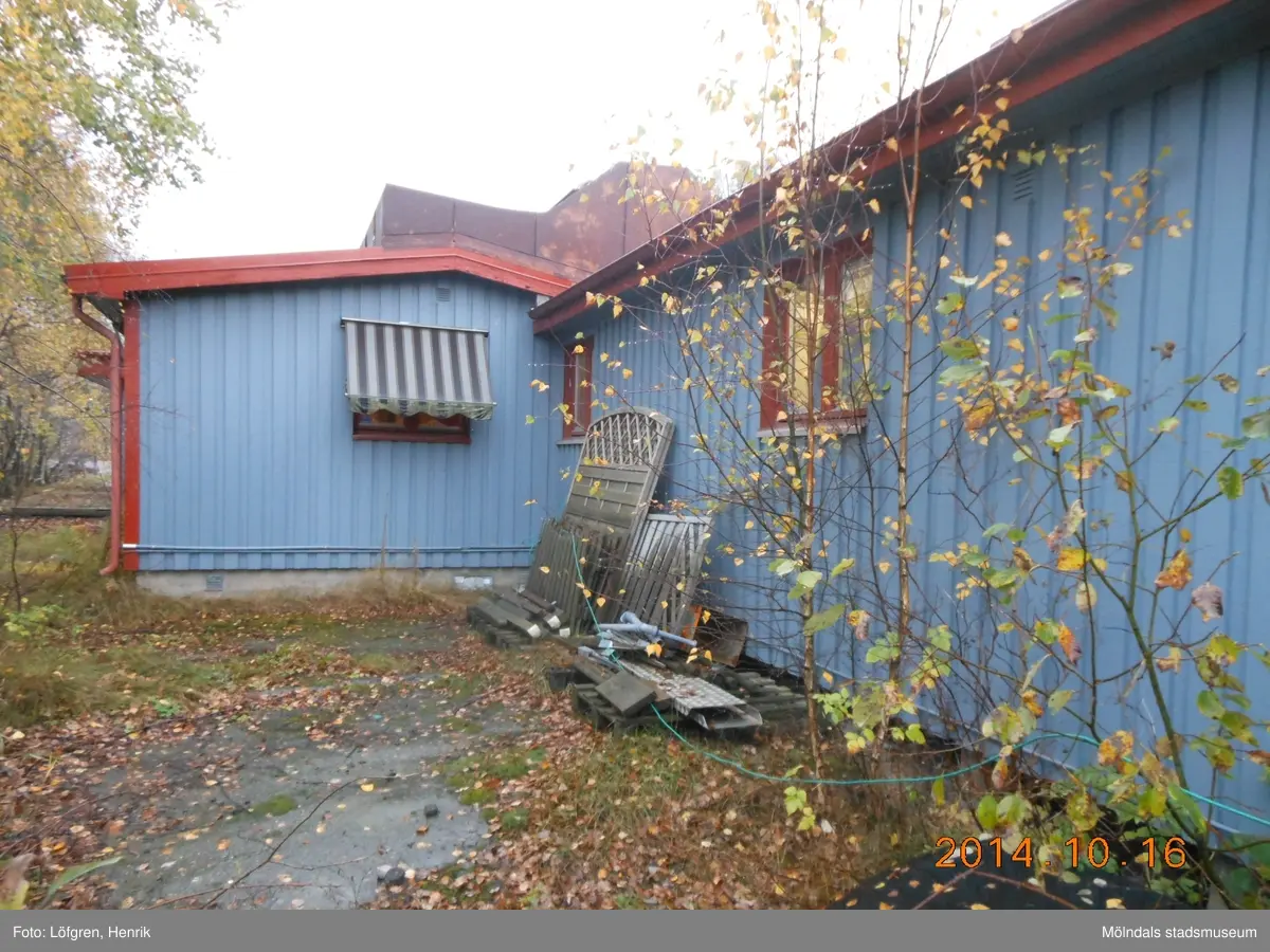 Kontorsbyggnad tillhörande fastigheten Backen 5:1 vid Sagsjövägen i Kållered. Vågkontor vid bergtäkten. Fotografi taget den 16/10 2014. Byggnadsdokumentation inför rivning.