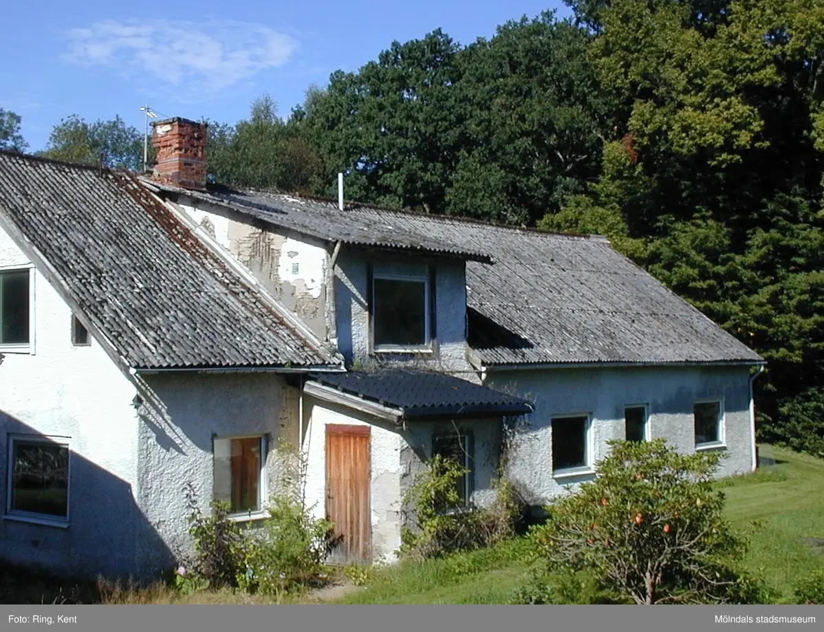 Bostadshuset på fastigheten Torvmossared 1:14 i Torvmossared, Lindome, i Mölndals kommun. Fotografi taget i augusti 2009. Byggnadsdokumentation inför byggnadens rivning som utfördes hösten 2009.