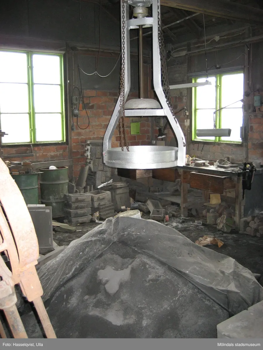 Interiörfotografi från Mölndals Metallgjuteri vid Fredriksgatan i Trädgården, Mölndal. Fotografiet är taget den 11/8 2008. Byggnadsdokumentation inför rivning.
