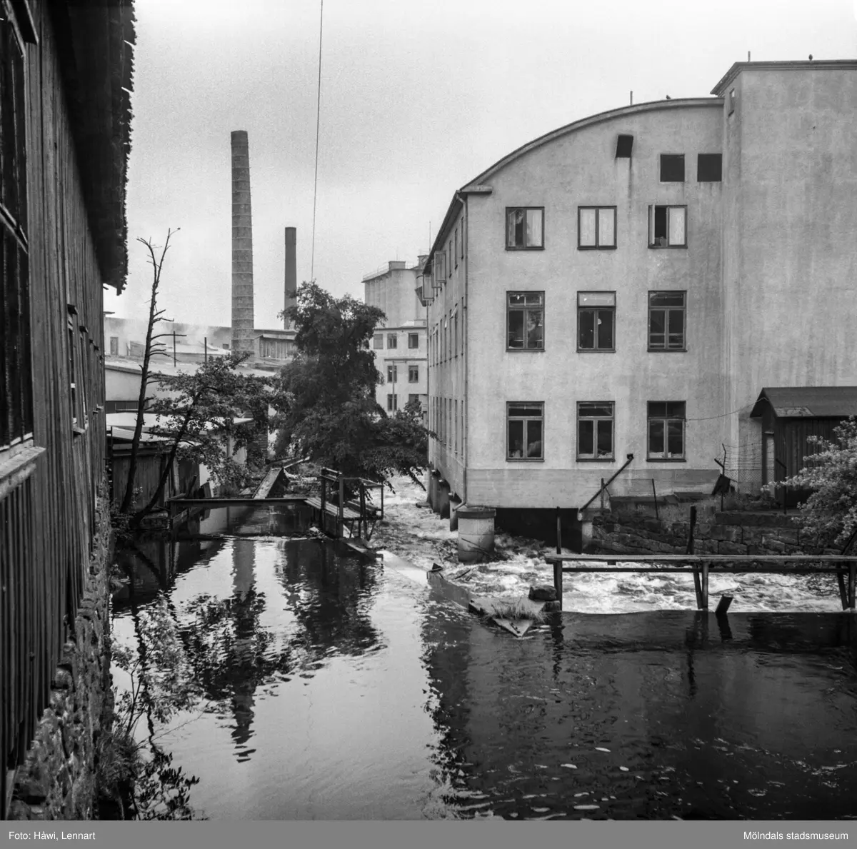 Titel: Mölndalsån, uppströms Forsebron. Mölndal, 1/6 1961.