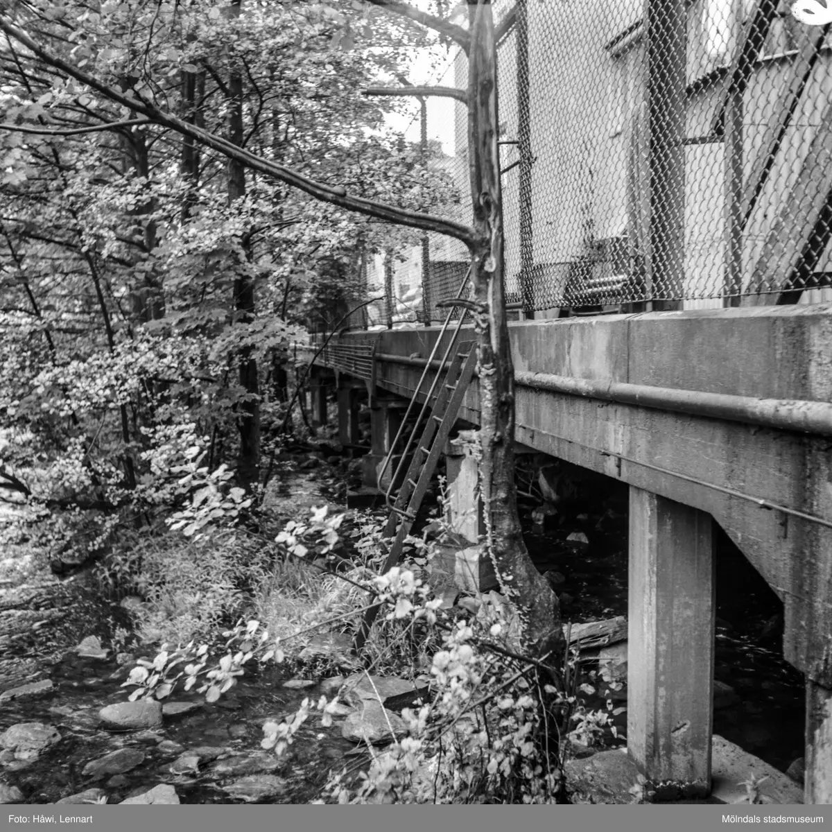 Titel: Mölndalsån, uppströms Forsebron. Mölndal, 1/6 1961.