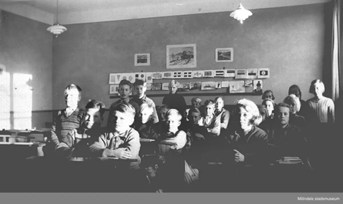 Troligen sjätte året, ht 1938. Barnen är fotograferade i klassrummet i den nya skolbyggnaden.