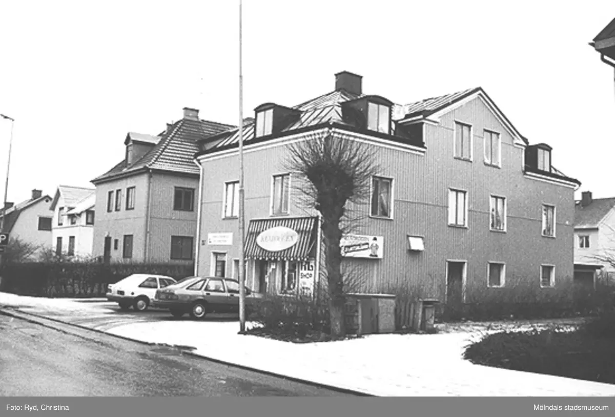Titel: Några hus vid Barnhemsgatan i Broslätt. Bilden är tagen under 1990-talet.