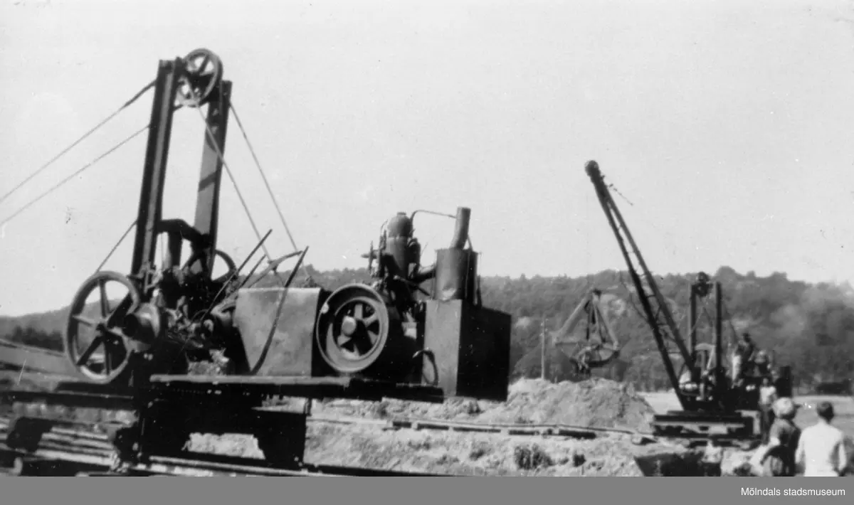 Titel:Årensning i Lindomeån med mudderverk, 1930-talet.