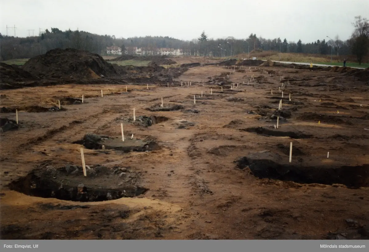 Arkeologisk utgrävning av gamla kokgrupar i Stretered, år 2001. Senare byggdes bostäderna Tulebovägen/Ängsbackevägen här. Relaterade motiv: 2004_0449 - 0550.