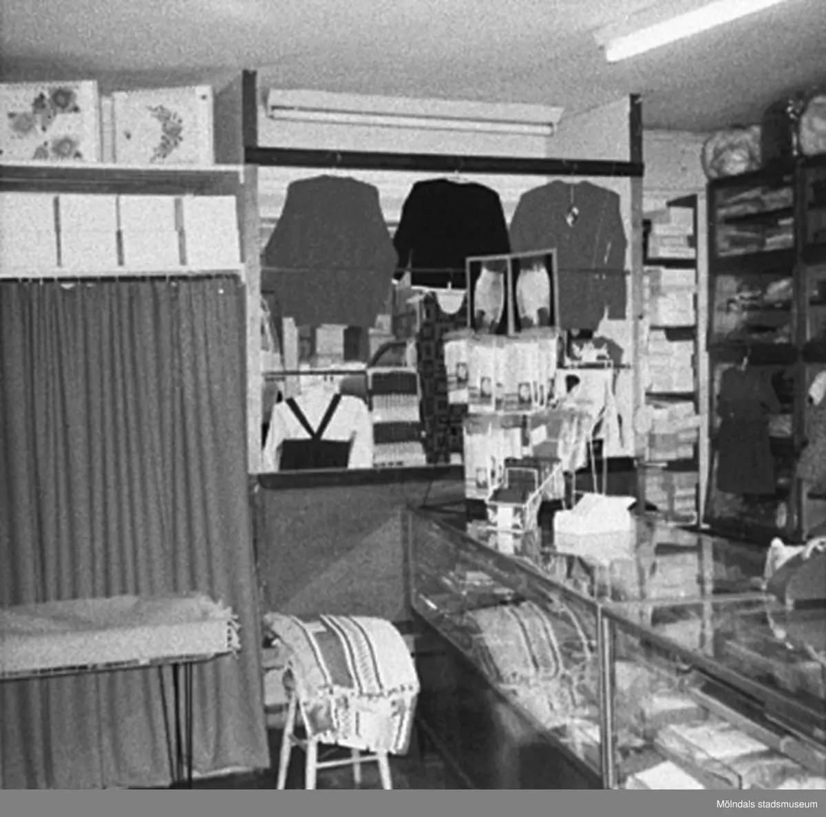 Interiör i Åkerströms manufakturaffär på Sörgårdsgatan 2 i Krokslätt. Okänt årtal.