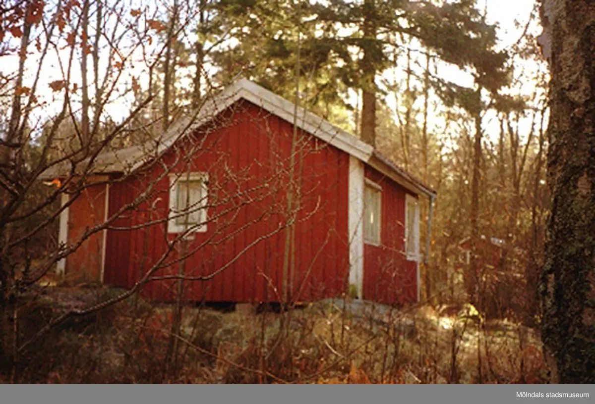 Fritidshus med skog runt omkring. Annestorp 1:17, Annestorp i Lindome februari 1995. Rivet 1995.