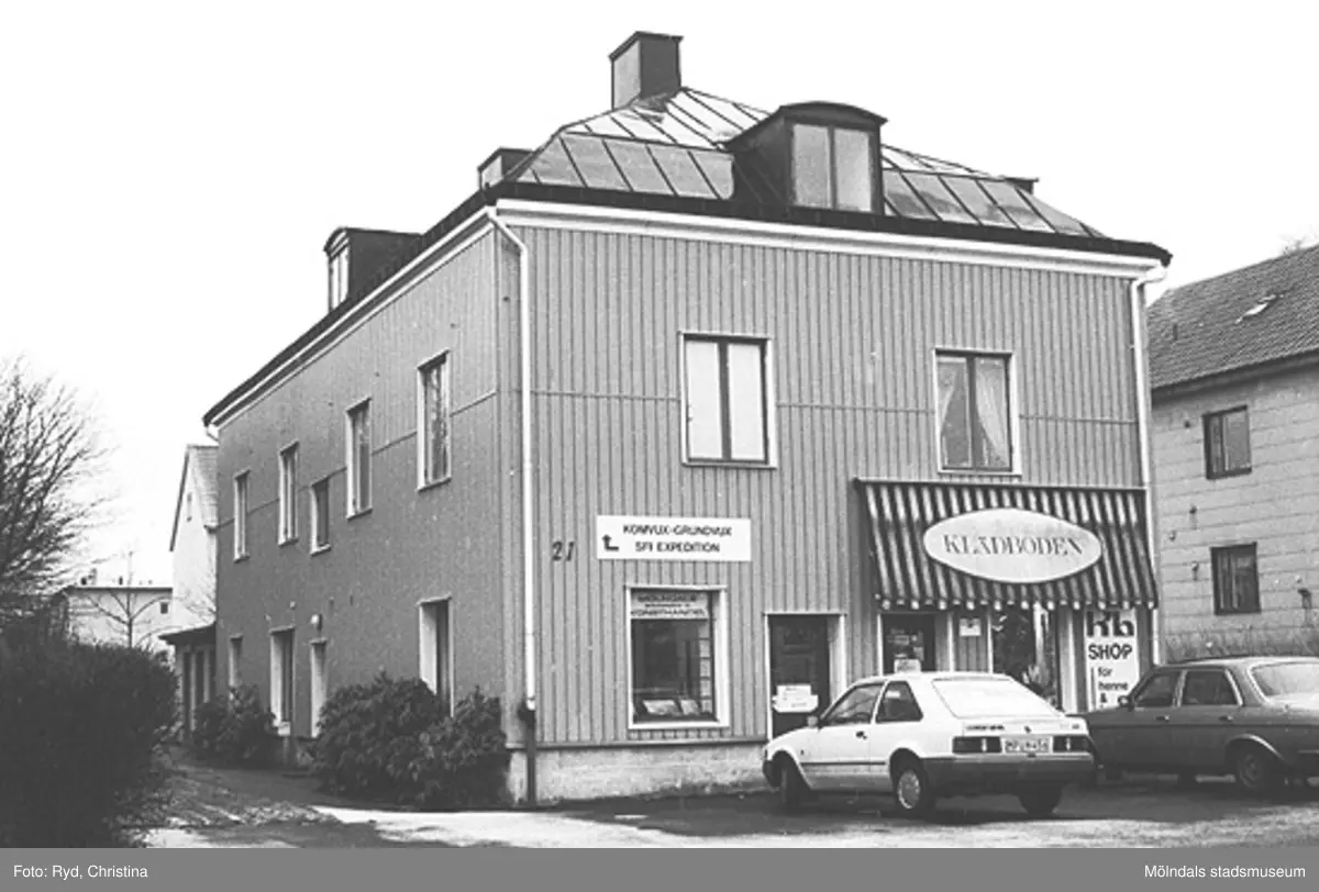 Ett hus på Barnhemsgatan 21 i Broslätt. Klädboden låg till höger. Bilden är tagen under 1990-talet.