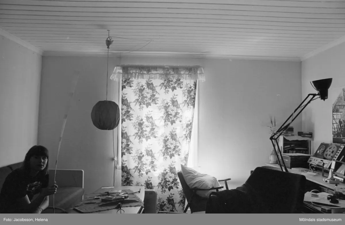Bostadshus Roten M 11-12, okänt årtal. Ett hobbyrum och en okänd person.